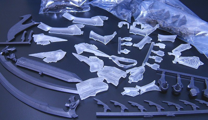 頭部、胸、背中、足の透明装甲はフレーム色が直接透ける為、他の部分と違和感が出てしまいます。